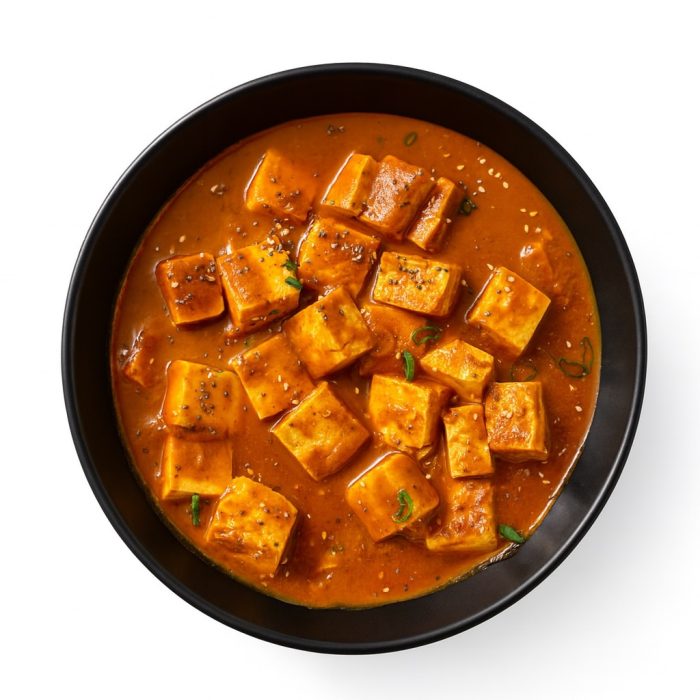 Pour the contents into a pan and heat the sauce. Season with salt and chili to match your spice preference. Add paneer or chicken, or mushrooms, then slowly incorporate hot water until the sauce reaches your desired consistency. Enjoy a flavorful meal in minutes!